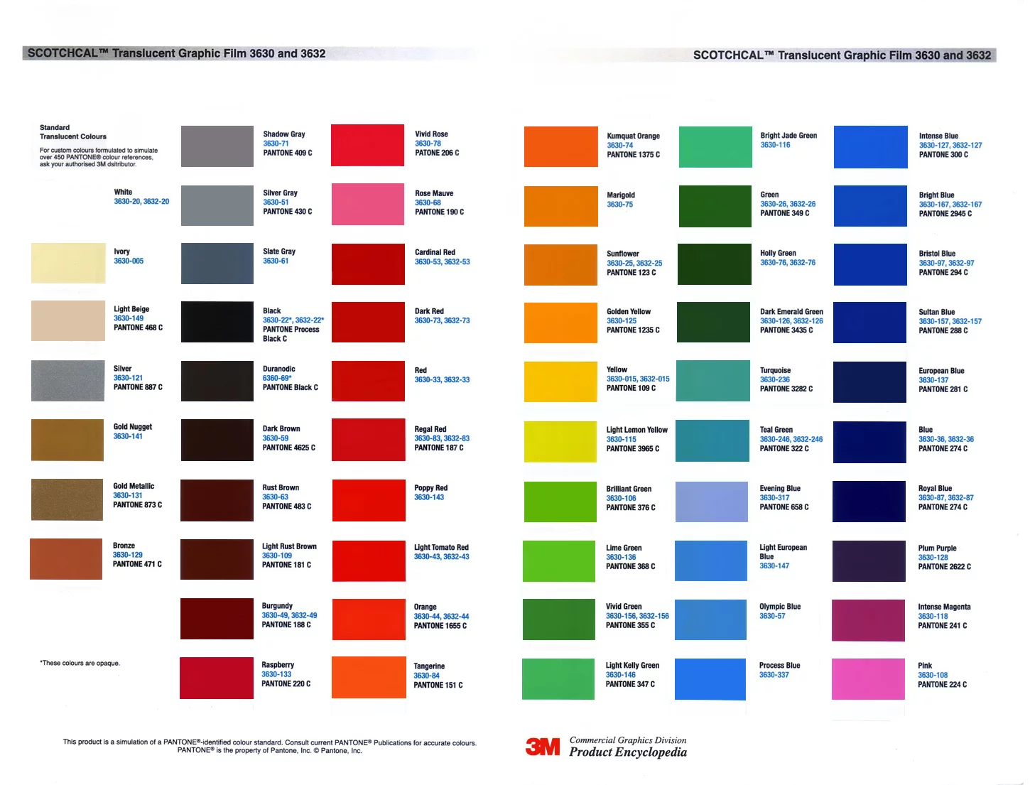 3M™ Scotchcal™ 3630 Translucent memiliki release paper liner sintetis tembus cahaya yang memfasilitasi pendaftaran multi warna dan karakteristik lapisan datar yang unggul serta menawarkan translusen sempurna yang seragam untuk cahaya yang dipantulkan maupun yang ditransmisikan. Permukaan doff yang rendah kilauan dapat menghilangkan silau, menjadikan produk 3M 3630 ideal untuk semua pengerjaan neon box internal dan eksterior yang diterangi cahaya.